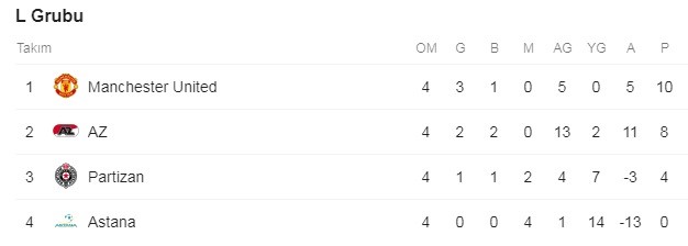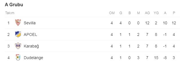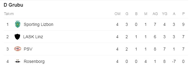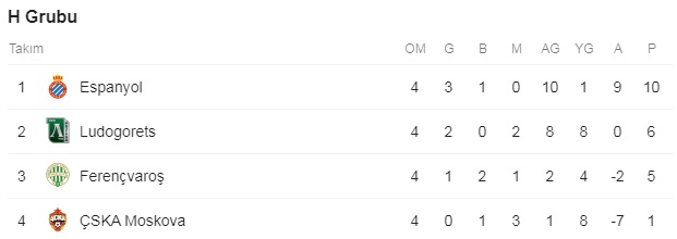 Avrupa Ligi’nde puan durumları