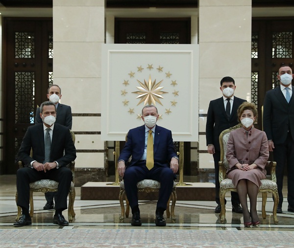 Leitao ve eşi ile bazı büyükelçilik mensupları, Cumhurbaşkanı Erdoğan'a takdimin ardından hatıra fotoğrafı çektirdi.