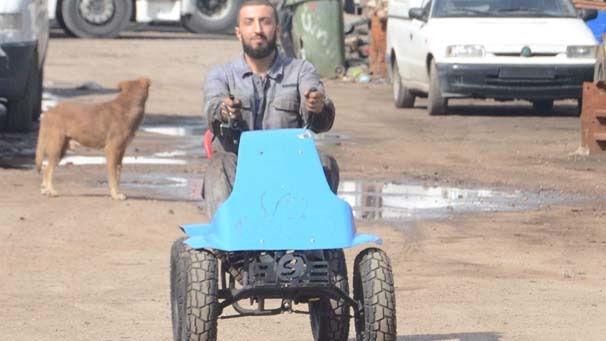 Kocaeli’nin Körfez ilçesinde torna atölyesi bulunan bir vatandaş, Avrupa'ya giden paralara kızdı ve dünyada bir ilke imza attı. Mustafa Şamiloğlu, 800 lira maliyetle tamamı yerli pedallı ATV üretti. Yolda aracı görenler meraklı bakışlarla incelemek için yanına koşuyor.