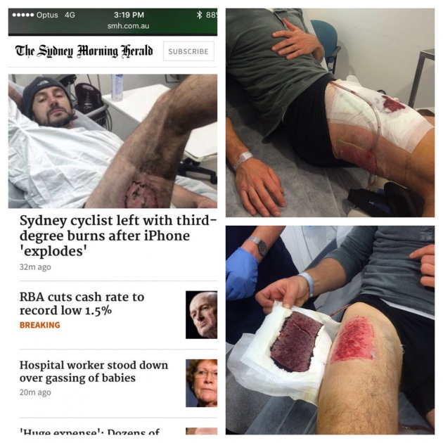 Geçtiğimiz Pazar öğleden sonra Avustralya'nın Manly Barajı yakınlarında yalnız olarak bisiklet süren Gareth Clear kişi, küçük bir düşme tehlikesi geçirdi ve bu düşme sonucunda vücudunda birkaç çizik oluştu. Ancak, onun Clear'ın sağ arka cebinde bulunan iPhone 6 bir pil arızası yaşadı ve erimeye başladı.