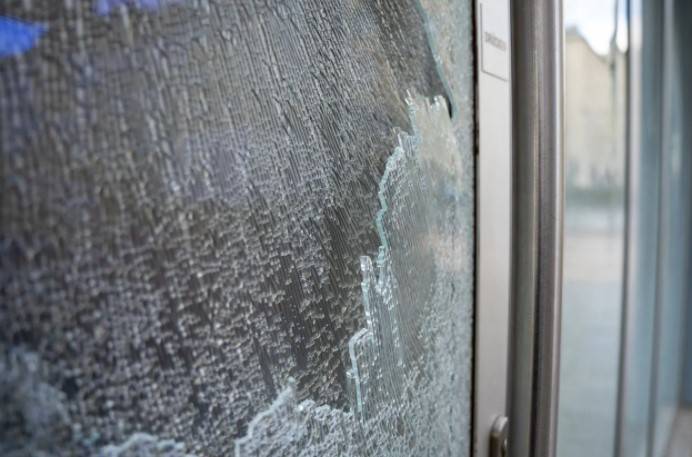 Güvenlik kamerası kayıtlarına yansıyan saldırıda caminin giriş katındaki camlar kırıldı.
