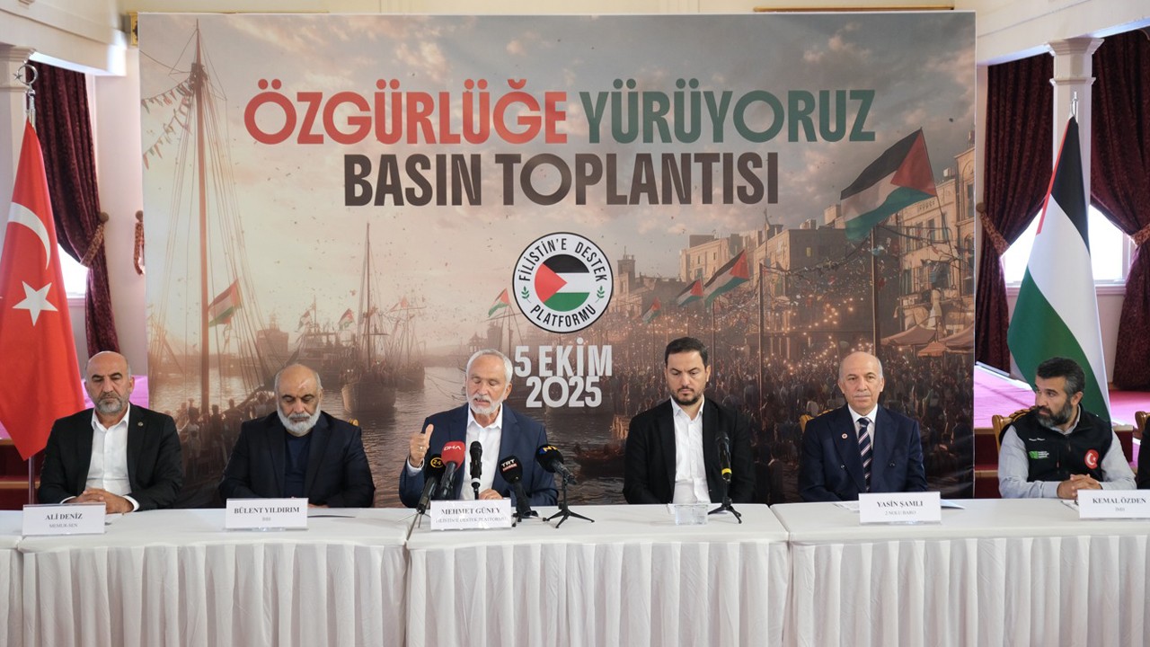 Gazze’deki ambargonun kırılması için havadan, karadan, denizden girişimlerde bulunulduğunu hatırlatan Güney, “Sumud Filomuz, Allah’a şükür Gazze açıklarına ulaştı. 2 Ekim 2025, Siyonist rejimin ambargosunun kırıldığı gün olarak tarihe geçti. Biz oraya gönlümüzü götürdük. Bu hareketin bir paydaşı olduğumuzu da deklare ediyoruz. İkinci ve üçüncü filolarla bu hareket devam edecektir” dedi. 7 Ekim 2023’te başlayan direnişe sahip çıkmak üzere 5 Ekim Pazar günü Ayasofya Meydanı’ndan başlayıp Eminönü Meydanına yürüyeceklerini kaydeden Güney, “Ayak seslerimiz Tel Aviv’den duyulsun istiyoruz. Kardeşlerimize vereceğimiz destek Kassam Tugaylarının yüreklerinde hissedilsin istiyoruz. Hem karadan hem de Sumud Filosunu andıracak şekilde teknelerle denizden alanda bulunacağız. Tüm İstanbul’daki kardeşlerimizi davet ediyoruz. Kardeşlerimiz, Türkiye’nin 81 ilinde yürüyüşlerle, basın açıklamalarıyla bugünü anacaklar. 5 Ekim Pazar günü herkes bulunduğu ilde bu duyarlılığın bir paydaşı olsun” çağrısında bulundu.