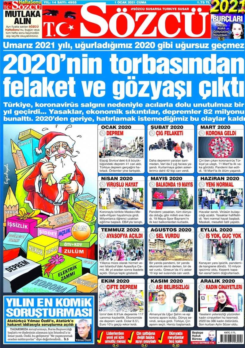 Bunlardan biri olan Sözcü paçavrası, Ayasofya-i Kebir Camii Şerifi’nin ibadete açılmasını, “2020’nin felaketleri” listesinin içinde saydı.