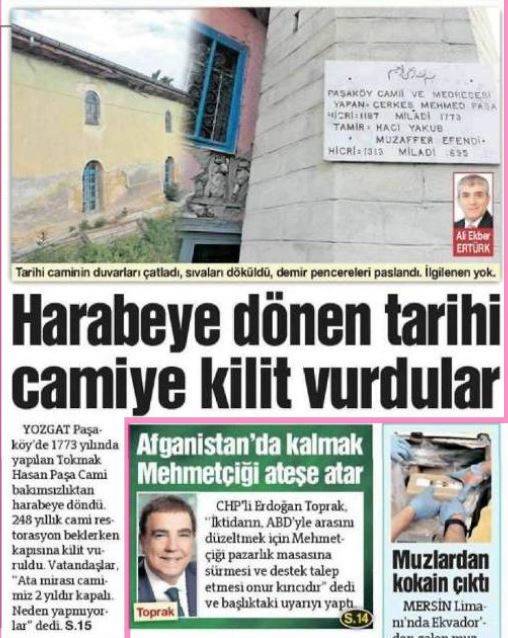 Yozgat’taki Tokmak Hasan Paşa Camii’nin restore edilmesi çağrısında bulunan Sözcü, yetkililerin camiyle ilgilenmediğini ileri sürerek kendince “duyar kastı.”