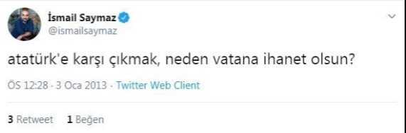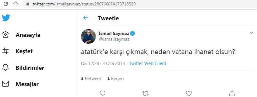 Doğan’ın yetiştirdiği İsmail Saymaz, her renge bürünebilen birisi olarak biliniyor. Parayı Kemalistlerden bulunca Atatürkçü kesilen Saymaz, bir dönem Twitter’da attığı Mustafa Kemal karşıtı mesajlarla gündeme gelmişti.