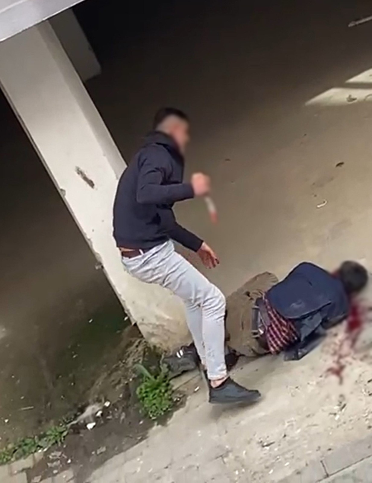 Yaşanan vahşeti görenlerin bağrışması ve 'Ne yapıyorsun sen?' diye seslenmesi üzerine A.Y.'nin başından kalkan T.E., kısa bir süre sonra tekrar yanına geldiği şahsın bu defa kulağına bıçak sapladı. Yaşananlar bir vatandaşın kamerasına yansıdı.