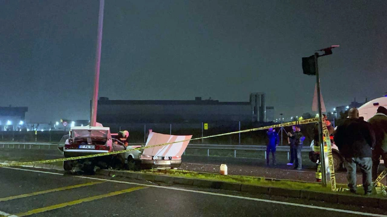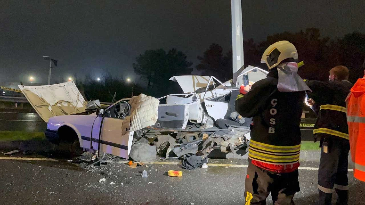 Yolda savrulan otomobil aydınlatma direğine çarptı. Çarpmanın şiddetiyle otomobil ikiye bölünürken, ihbar üzerine bölgeye sağlık, polis ve itfaiye ekipleri sevk edildi.