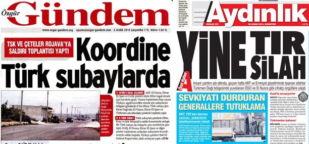 Aynı konuyu bugün PKK'nın basın bülteni Özgürgündem de manşetine taşıdı. "Koordine Türk subaylarda" manşetiyle çıkan PKK gazetesi, Azez-Cerablus arasında meydana getirilecek tampon bölge için Türk subayların bölgeye intikal ettiğini ve savaşçıları koordine ettiğini iddia etti. Terör gazetesi Özgürgündem, muhaliflere silah sevkiyatının ise Öncüpınar Sınır Kapısı'ndan gerçekleştirildiğini savundu.