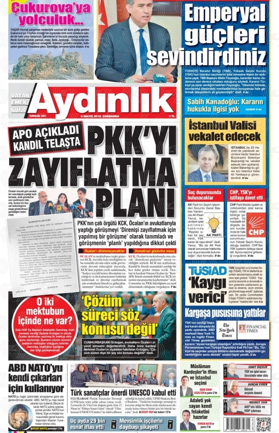 Ulusalcı Aydınlık gazetesinden bugün ilginç bir manşet geldi. Aydınlık, teröristbaşı Abdullah Öcalan'ın mektubunun Kandil'deki terörist elebaşlarını telaşlandırdığını yazdı. Ancak "Apo açıkladı, Kandil telaşta! PKK'yı zayıflatma planı" başlıklı haberi sunuş tarzı ile, asıl telaşlanan tarafın Aydınlık olduğu yorumlarına neden oldu.