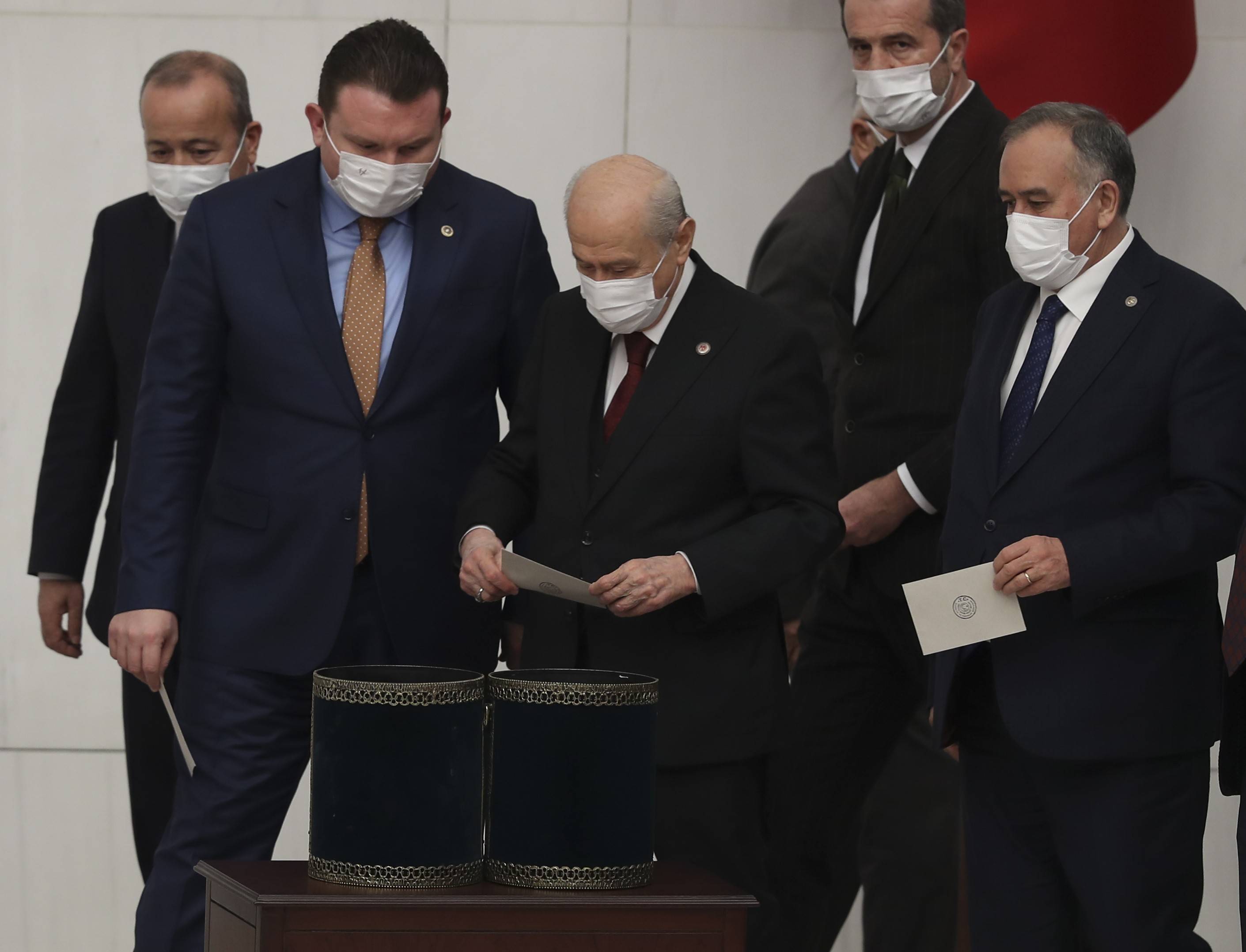 Öte yandan, MHP Genel Başkanı Devlet Bahçeli ile AK Parti Genel Başkanvekili Binali Yıldırım, TBMM Genel Kurulu'na gelerek oylamaya katıldı.