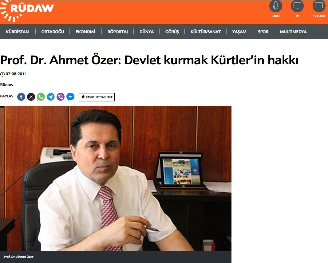 Toros Üniversitesi Rektör Yardımcısı Prof. Dr. Ahmet Özer, Rûdaw’ın, Türkiye’de Kürt sorunu bağlamında yaşanan gelişmelere ve Irak’taki siyasal duruma ilişkin sorularını cevapladı.