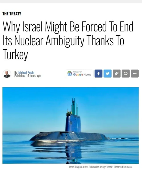 Trump, Türkiye'ye silah satışlarını sürdürmek isterse, İsrail'in nükleer kartını ilan etmekten ve Türkiye'nin gizli bir nükleer silah geliştirmeye çalışması veya topraklarında depolanan ABD nükleer silahlarına el koyması durumunda Türkiye'ye tek taraflı olarak saldırmaktan başka seçeneği kalmayacaktır"