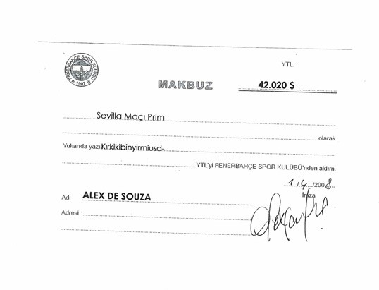 Prim konusuna gelince ; Alex Brezilya basınına yaptığı açıklamada Sevilla maçıyla ilgili olarak da takıma ve kendisine prim ödemesi yapılmadığı iftirasını ortaya atmıştır. Kulüp resmi kayıtlarında da yer aldığı üzere futbolculara , Sevilla maçı ile ilgili olarak 01 Nisan 2008 tarihinde toplam 1 milyon 50 bin Amerikan doları prim dağıtılmıştır. Bu kapsamda teknik heyetin belirlediği oranlar doğrultusunda Alex’e de 42.020 USD ödeme yapılmıştır ve ödemeyi aldığına dair kendisinin imzasının yer aldığı ilgili dekont ektedir. Haberlerde bahsi geçen Beşiktaş maçı için ise 24 Nisan 2008’de toplam 1 milyon Amerikan doları prim ödenmiştir. Alex’e aynı maç için 43.000 USD prim ödemesi yapıldığı yine ekteki bir diğer imzalı dekontla sabittir. Prim rakamları nettir ve vergileri de kulübümüz tarafından ayrıca ödenmiştir.