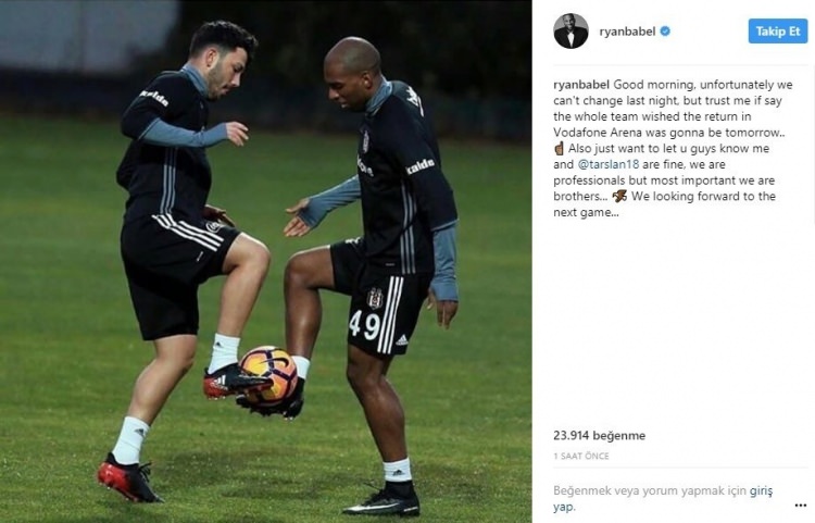 Ryan Babel, yaşanan tartışma ile ilgili sosyal medya hesabından bir açıklama yaptı.