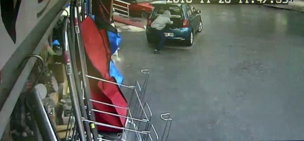 Güvenlik kamerası görüntülerinde elinde valiz olan kurye dükkanından çıkarak valizi aracının bagajına koyuyor ve arabasına biniyor. Bu esnada arkadan koşarak gelen hırsız bagajın kapısını açarak altın dolu valizi alarak kaçıyor. Durumu fark eden kurye hırsızın arkasından silahla defalarca ateş ediyor ve yaralanan hırsız hazır bulunan araca binerek olay yerinden kaçıyor.