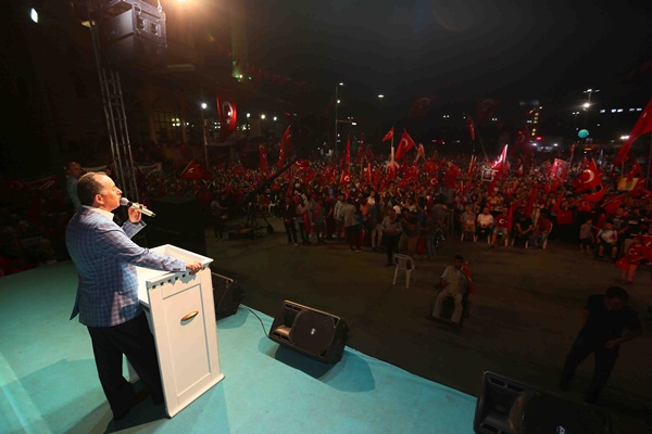 AK Parti İstanbul Milletvekili Tülay Kaynarca da binlerce ilçe sakinlerini bu nöbetlerinde yalnız bırakmadı. Meydanı dolduran Bağcılarlılara hitap eden Kaynarca, devletin birçok kurumuna sızdırılmış Fetö mensuplarının temizlenmesine başlandığını belirti. Fetö Terör Örgütü’ne ait okul, dernek, vakıf, kurum ve kuruluşların kapatıldığını hatırlatan Kaynarca, “İki haftadır bombalanan Türkiye Büyük Millet Meclisimizde çalışıyoruz. Kanunlar çıkarıyoruz. Beyin göçünün önlenmesine yönelik kanun çıkardık. Artık yurt dışındaki beyinlerimiz ülkemize gelecek, burada vatanına hizmet verecek.” dedi.