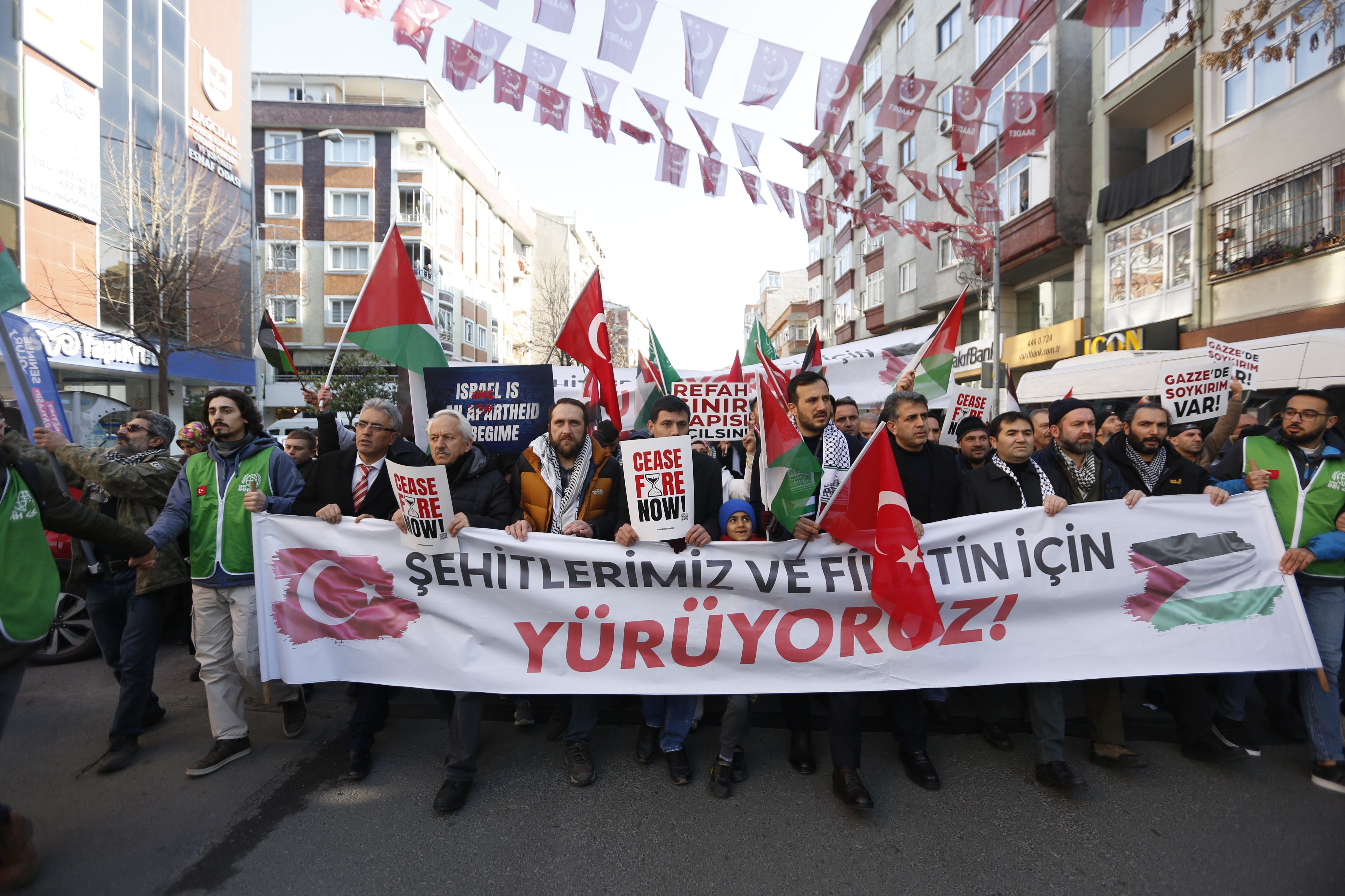 Soğuk havaya rağmen şehitlerimiz ve Filistin için bir araya gelen on binler, Üçyüzlü Metro Durağı'ndan Bağcılar Meydanı'na yürüdü. İHH ve birçok sivil toplum kuruluşunun organize ettiği yürüyüşte katılımcılar, teröre ve işgalci İsrail’in zulümlerine tepki gösterdi.