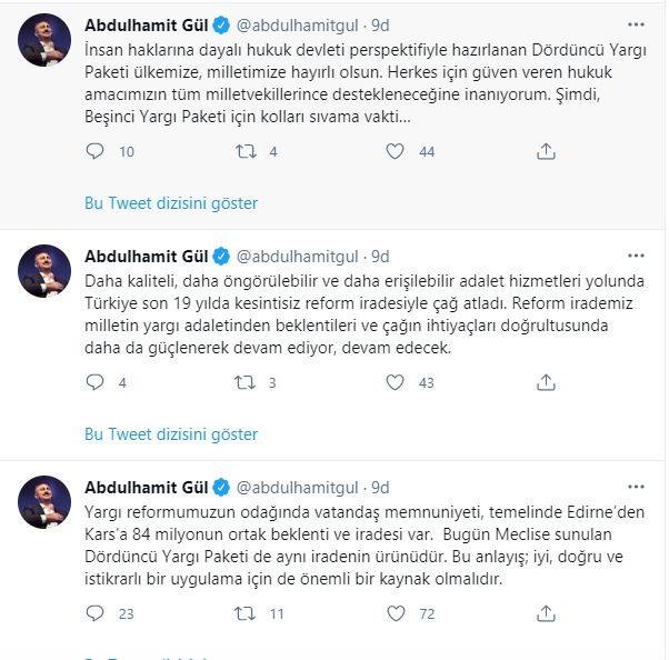 Adalet Bakanı Abdulhamit Gül bugün meclise sunulan 4. Yargı paketi ile ilgili, “84 milyonun ortak beklenti ve iradesi var.” ifadeleriyle paylaştı.