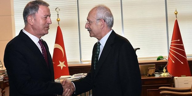 Milli Savunma Bakanı Hulusi Akar, CHP Genel Başkanı Kemal Kılıçdaroğlu'nu ziyaret etti. Kılıçdaroğlu ile Akar, CHP Genel Merkezi'nde baş başa görüştü.