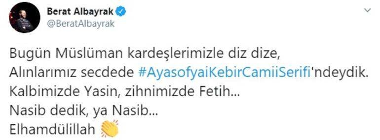 Hazine ve Maliye Bakanı Berat Albayrak, Ayasofya Camii ile ilgili paylaşımda bulundu.