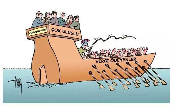 Maliye Bakanı Mehmet Şimşek’in dün Twitter’dan paylaştığı karikatür dikkat çekti. ‘Vergi adaleti’ başlığı ile Şimşek’in paylaştığı karikatürde ‘vergi ödeyen’ kişiler kürekçiler olarak sembolize edilmiş ve bir kişi o insanlara kırbaç ile vuruyor. Geminin üst tarafında ise varlıklı görünümleriyle dikkat çeken kişiler içeceklerini yudumluyorlar. Bu kişilerin bulunduğu alana ‘vergiden muaf’ ve ‘çok uluslu’ isimleri verilmiş.