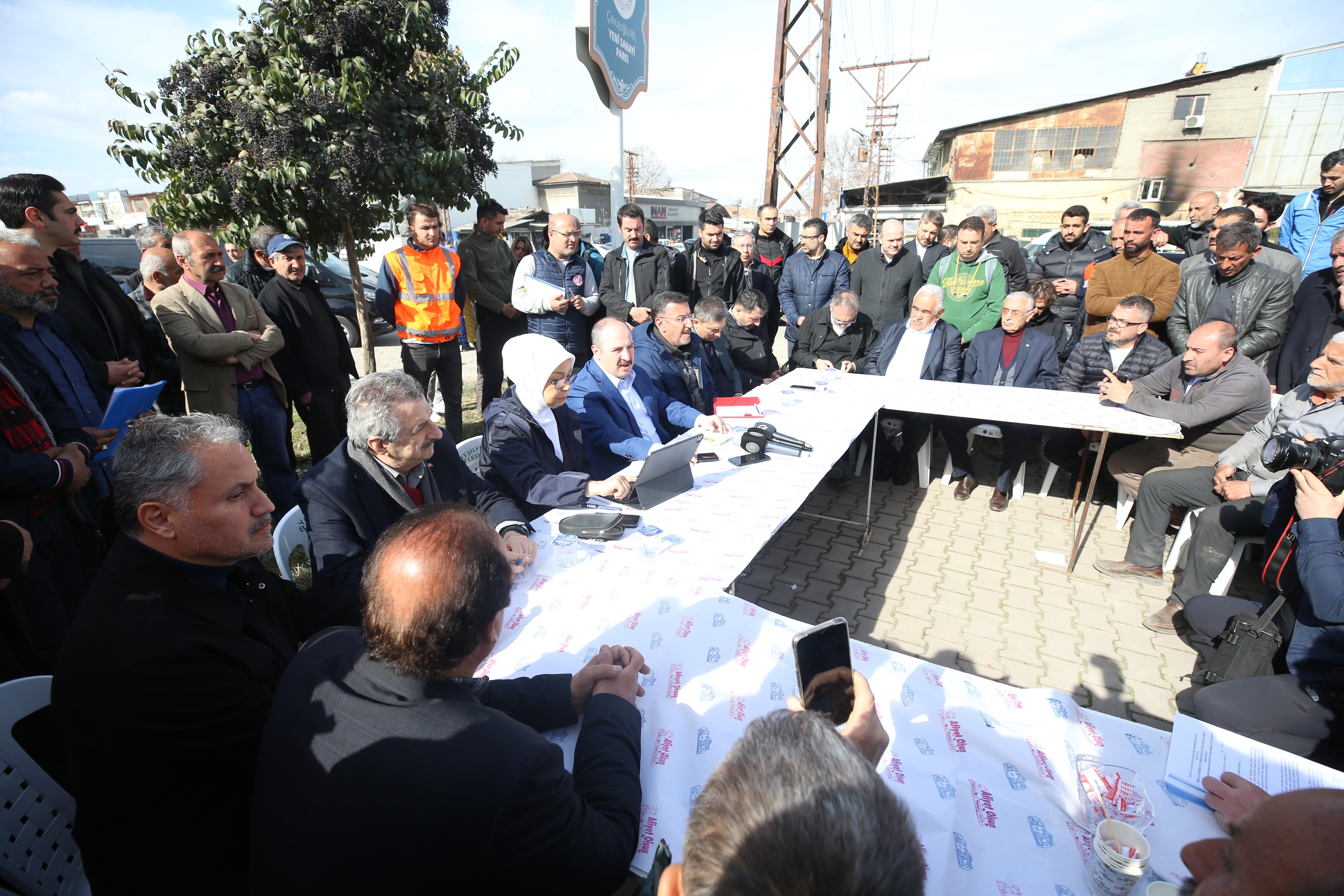"Bunlar bitmeden, 'Sen yerinde yaparsın, yapamazsın' deme şansımız yok. Allah korusun, işte görüyorsunuz böyle bir afette başımıza neler geliyor. Zemin etütleri çıktıktan sonra eğer burada şehir planlamacılığı anlamında da daha önce konuştuğumuz hususları dikkate alarak, yerinde yapılması mümkün olan işlerle ilgili size desteklerimizi inşallah vereceğiz ama asıl önemli olan, sanayiyi planladığımız o bölgelere taşıyabilmek. Hızlıca orada inşallah aksiyonu almış olacağız. Şehirde geçici dükkan tarzı ihtiyaçlar olduğunu biliyoruz. Bununla ilgili geçici yapılabilecek işlerle ilgili kalkınma ajanslarına talimat verdim. Geçici ticaret alanlarıyla ilgili ihtiyaçlar varsa belediyemiz ve vekillerimizle bunları hızlıca devreye alabiliriz. En azından geçici ticaretin başlaması ve ufak tefek tamiratların yapılmasıyla ilgili kalkınma ajansımız size gerekli destekleri verecek. Biz, görevimizin başındayız."