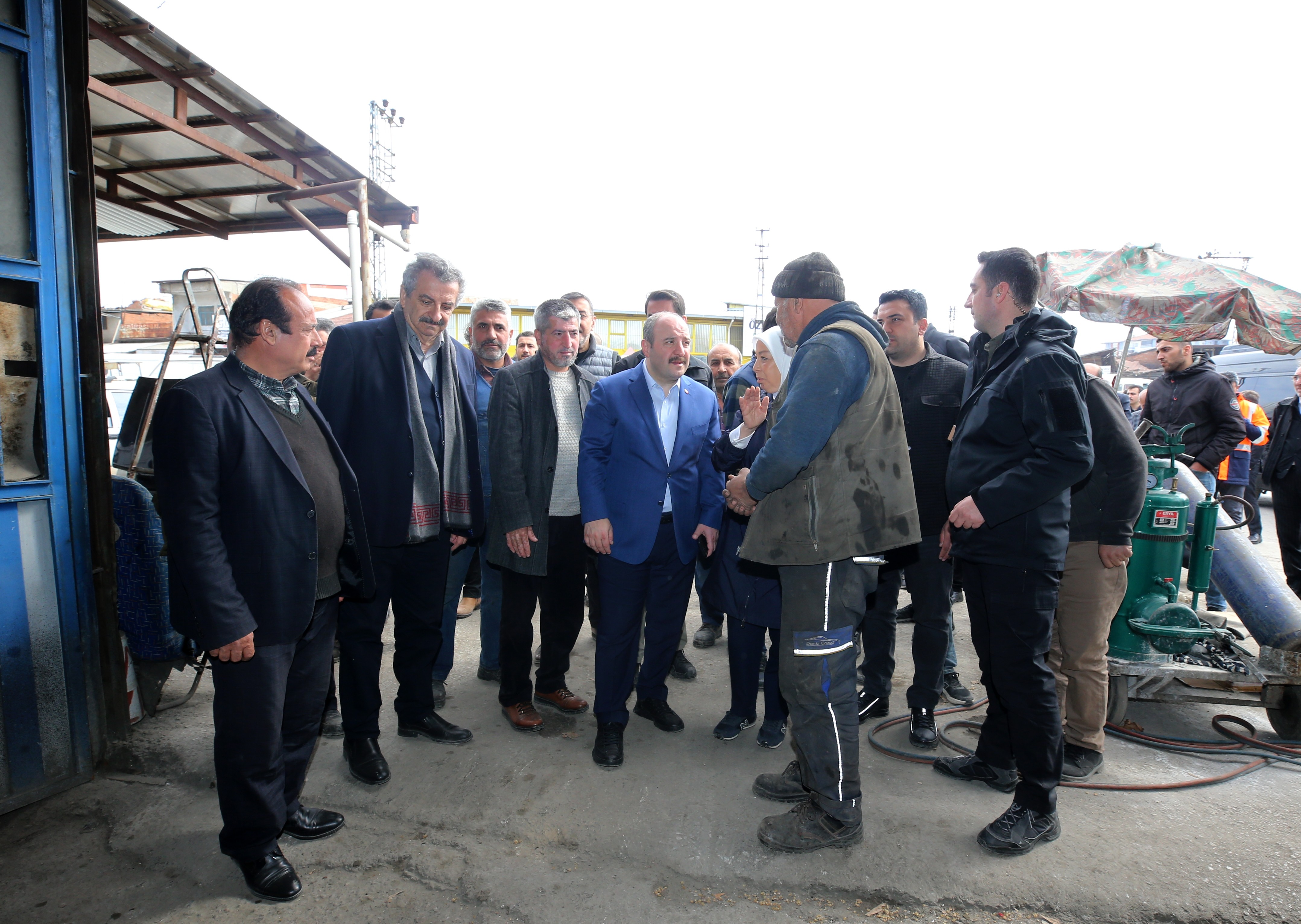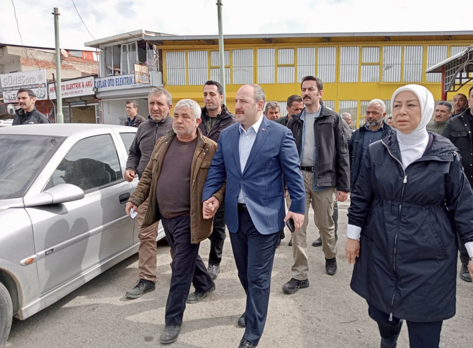 Sanayi ve Teknoloji Bakanı Mustafa Varank, Kahramanmaraş merkezli 6 Şubat'taki depremlerden etkilenen Malatya'da Küçük Sanayi Sitesi'nde esnafla bir araya geldi.