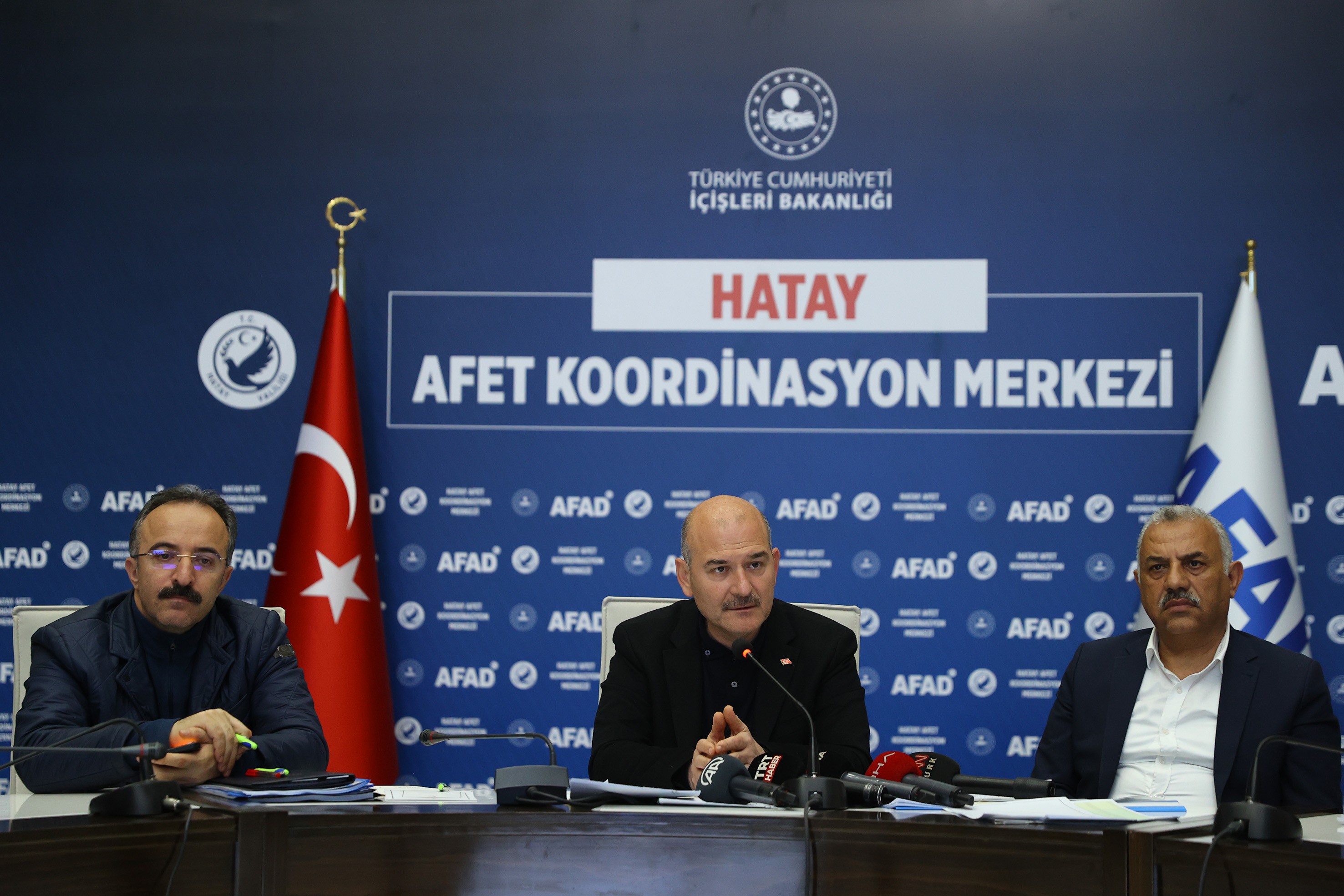 İçişleri Bakanı Süleyman Soylu, Hatay AFAD Koordinasyon Merkezi'nde gerçekleştirilen toplantının ardından açıklamalarda bulundu.