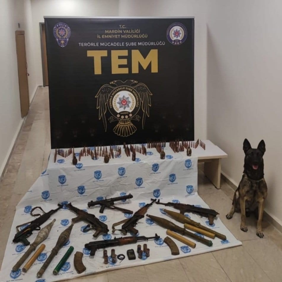 İçişleri Bakanı Süleyman Soylu, Mardin İl Emniyet Müdürlüğü Terörle Mücadele Şube Müdürlüğü (TEM) ekipleri tarafından aralarında roket başlıkları, uzun namlulu silahlar, silahlara ait mermilerin ele geçirildiğini sosyal medya hesabından paylaştı.