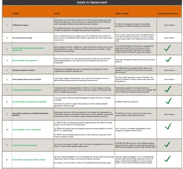 Türkiye’ye yönelik ekonomik saldırıların ardından sanayicinin ve girişimcinin üzerindeki yükün hafiflemesi, üretimde çarkların daha hızlı dönmesi için hazırlanan 16 maddelik destek ve önlem paketinde kısa sürede önemli mesafe kaydedildi. Sanayi ve Teknoloji Bakanı Mustafa Varank’ın bizzat takip ettiği eylem planı, sektörün talepleri dikkate alınarak yeni ekonomi modelindeki tasarruf ilkeleri göz önünde bulundurularak hazırlandı.