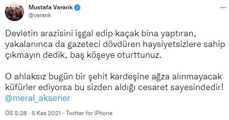 Türkkan'ın kameralara yansıyan küfrü sosyal medyada günün en çok konuşulan konusu oldu. Türkkan'ın skandal sözüne sosyal medyada tepki yağdı. Bu tepkilerden biri de Sanayi ve Teknoloji Bakanı Mustafa Varank'tan geldi. Bakan Varank, Meral Akşener'i etiketleyerek, sosyal medya hesabı Twitter'dan yaptığı paylaşımda şu ifadeleri kullandı: