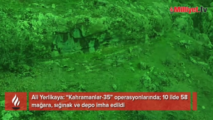 İçişleri Bakanı Ali Yerlikaya, PKK'lı teröristlerinin sakladıkları çeşitli silah, mühimmat ve patlayıcıların yok edilmesine yönelik gerçekleştirilen “KAHRAMANLAR-35” operasyonlarında 10 ilde 58 mağara, sığınak ve deponun imha edildiğini açıkladı.
