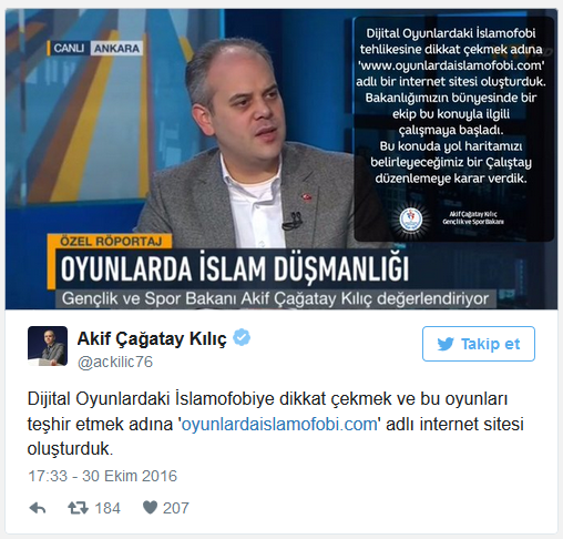 Gençlik ve Spor Bakanlığı Oyunlardaki İslam karşıtlığını konu alan bir internet sitesi açtı.