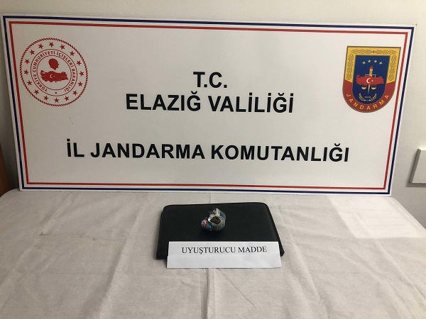Elazığ İl Jandarma Komutanlığınca bölgede huzur ve güvenin sağlanması maksadıyla yapılan istihbari çalışmalar sonucunda H.B. isimli şüphelinin uyuşturucu madde bulundurduğu bilgisine ulaşıldı. Kaçakçılık ve Organize Suçlarla Mücadele Şube Müdürlüğü ve Maden İlçe Jandarma Komutanlığınca şüphelinin bulunduğu araç durdurularak yapılan arama sonucunda turşu bidonuna zulalanmış 100 gram toz esrar ele geçirildi.
