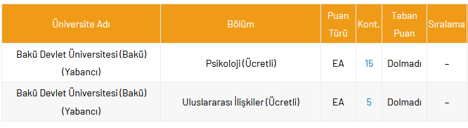 Bakü Devlet Üniversitesi taban puanları 2021, yüzdelik dilimleri ve kontenjan sayıları kaçtır?
