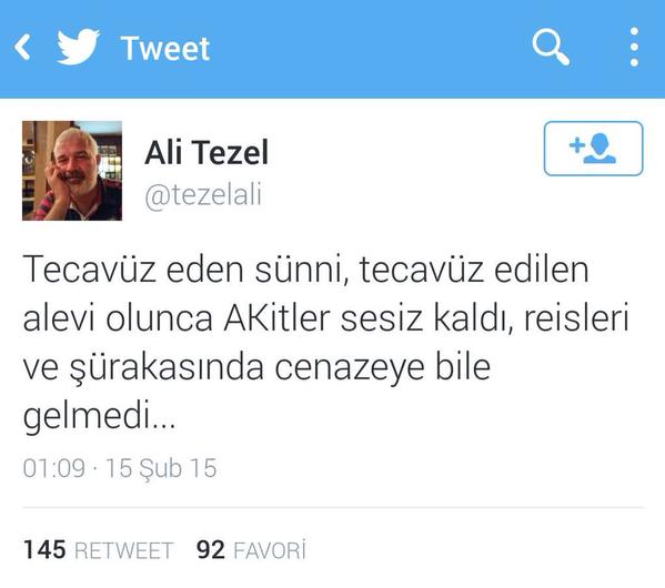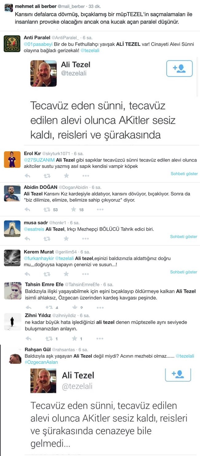 Gülen örgütünün tetikçisi Tezel Özgecan’ın üzerinden şöyle Alevi-Sünni kışkırtıcılığı yaptı: