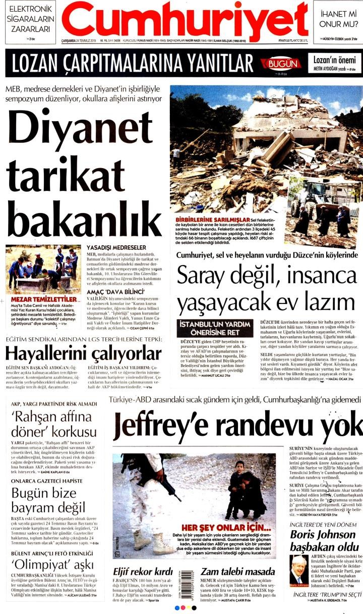 Eşcinsellik ve müstehcenlik içeren her faaliyeti öve öve bitiremeyen Din düşmanı Cumhuriyet gazetesinin, “Diyanet tarikat bakanlık” başlıklığıyla din görevlilerinin eğitim sempozyumuna yönelik yaptığı haber yalan çıktı.
