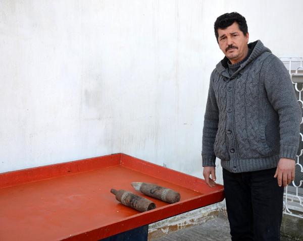 Çanakkale'de oltayla balık avladığı sahilde, savaş yıllarından kalma patlamamış 2 top mermisi bulan balıkçı Mehmet Taraz, "Çamlık'ta balık tutmaya gittim. Sahilde gezerken de bunları buldum. Kötü amaçlı kişilerin eline geçmemesi için eve getirdim ve polise teslim ettim" dedi.