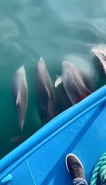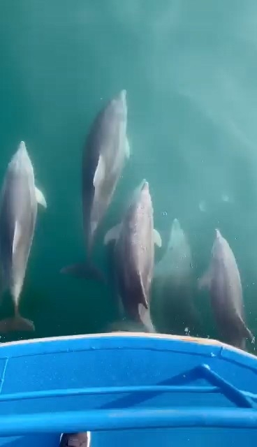 Balıkçı teknesine eşlik eden yunus sürüsü renkli görüntüler oluşturdu