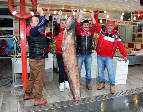 Samsun'da uzunlukları 2 metreye yakın 3 dev yayın balığı yakalandı.