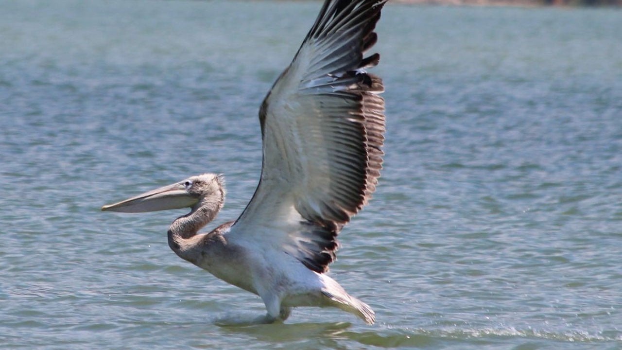 Aydın’daki Azap Gölü’nde gagasına dolanan olta iğneleri sebebiyle uçamaz hale gelen nesli tehlike altındaki tepeli pelikan, balıkçıların müdahalesiyle dakikalar içinde yeniden özgürlüğüne kavuştu.