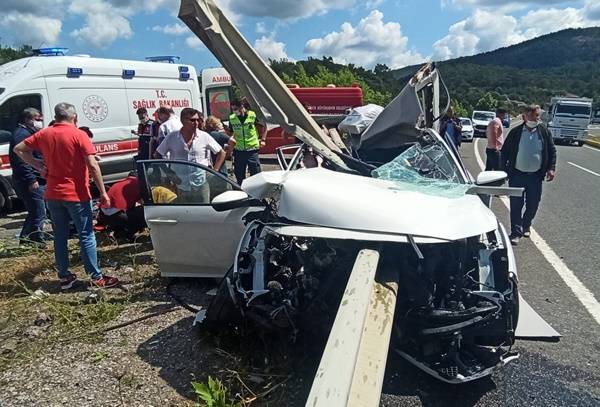 Bariyerin saplandığı otomobilde sıkışan sürücü ile eşi Sabahat ve 7 yaşındaki torunları Ebrar Ela Cırcır ile Münevver Seven, Balıkesir Büyükşehir Belediyesine bağlı itfaiye ekiplerince araçtan çıkarıldı.