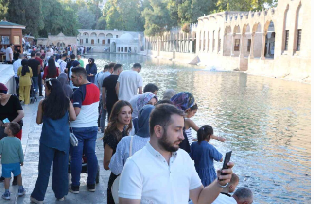 Şanlıurfa’da inanç turizminin önemli merkezlerinden Balıklıgöl, havanın serinlemesiyle sonbaharda da yoğun ilgi görüyor.