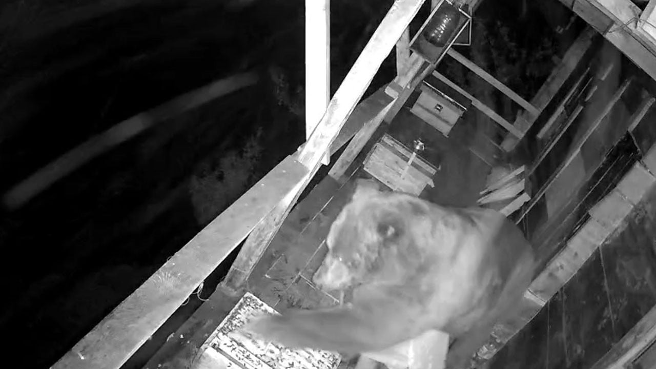 Trabzon’un Of ilçesinde bir ayı, bir evin 2. katındaki balkona tırmanıp arı kovanlarını parçaladı; bitiremediği balı ise ertesi gün yeniden gelip yemeye devam etti. O anlar güvenlik kamerasına yansıdı.