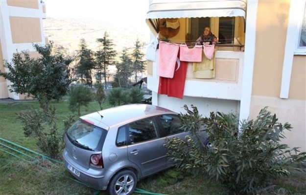 Öte yandan otomobilin çarptığı yerin üzerindeki odada oturduğu sırada gürültüyle balkona fırlayan Melahat Genç adlı yaşlı kadın ise, “Kazayı duydum, deprem oluyor sandım. Baktım orada taksi duruyordu. Sabahleyin de taksi çağırmıştım o da kaldı. Dışarı çıktım bir baktım balkonda taksi var” diye konuştu.