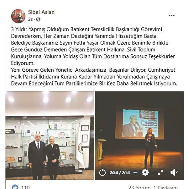 Emekliliğine daha 8 yıl varken görevinden ayrılan “Bankamatik Sibel” lakaplı CHP’li Aslan, istifasını sosyal medya hesabından duyurdu. Kendisine sahip çıkılmadığını iddia ederek CHP’li belediye yönetimine sitem eden Aslan, istifa dilekçesinde belediye iştiraki YE-PA’da işe başladığı 7.08.2012 tarihi ile işten ayrıldığı 29.11.2021 tarihine kadar olan kıdem tazminatının da hesaplatılarak banka hesabına yatırılmasını istedi. Yaklaşık 10 yıldır CHP’li Yenimahalle Belediyesi’nin kadrosunda olan ve haberimiz sonrası konforu bozulan CHP’li Aslan’ın istifası, “emeğiyle para kazanmak zor geldi” şeklinde yorumlanırken, kamuoyu çalışmadan alınan maaşların ve kıdem tazminatının hesabının sorulmasını bekliyor.