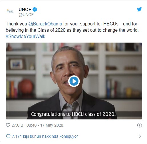 Tarihsel olarak siyah öğrenci yetiştiren eğitim kurumlarının online mezuniyet törenlerine hitaben konuşma yapan ABD'nin ilk siyah başkanı, 'koronavirüs pandemisinin ülke liderliğinin eksik, noksan ve başarısızlıklarını açık ettiğini' söyledi.