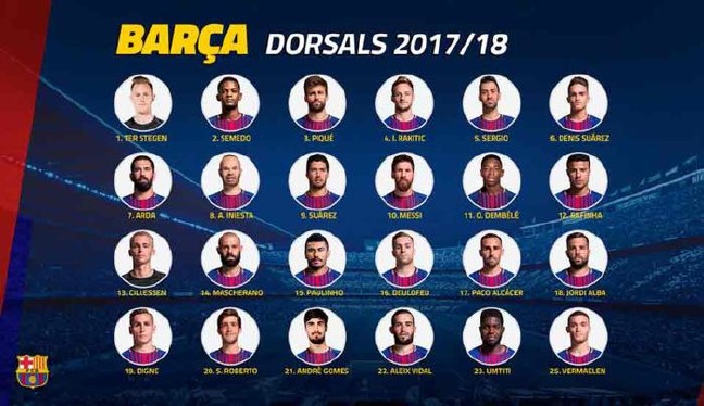 Neymar'dan boşalan 11 numaralı formayı Ousmane Dembele giyecek. Yeni transferlerden Semedo 2 numara, Paulinho 15 numara, Deulofeu 16 numarayı giyecek.
