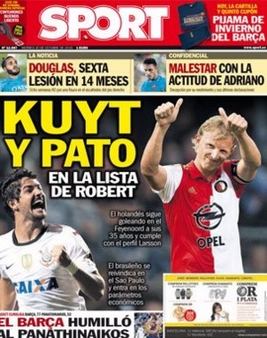Devre arasında bir forvet transferi yapmak isteyen Barcelona'nın, Robin Van Persie, Dirk Kuyt ve Alexandre Pato ile ilgilendiği iddiaları uzun süredir Katalan basınının manşetlerini süslüyor. Son olarak Sport Gazetesi, Barça'nın Kuyt ve Pato'dan birini kadrosuna katmak için istekli olduğunu yazdı.