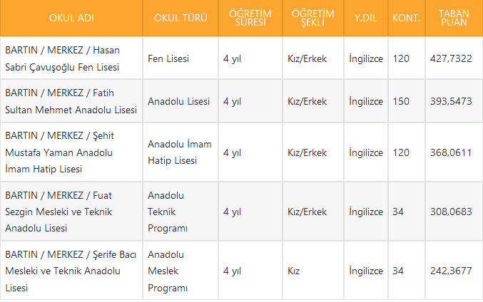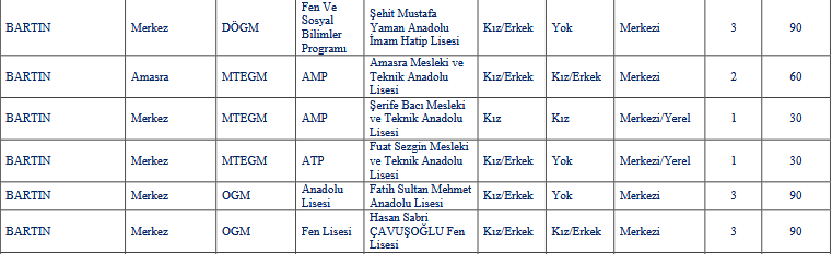 Bartın liseleri taban puanı 2021 Bartın liseleri başarı sıralaması |Bartın liseleri kontenjanları